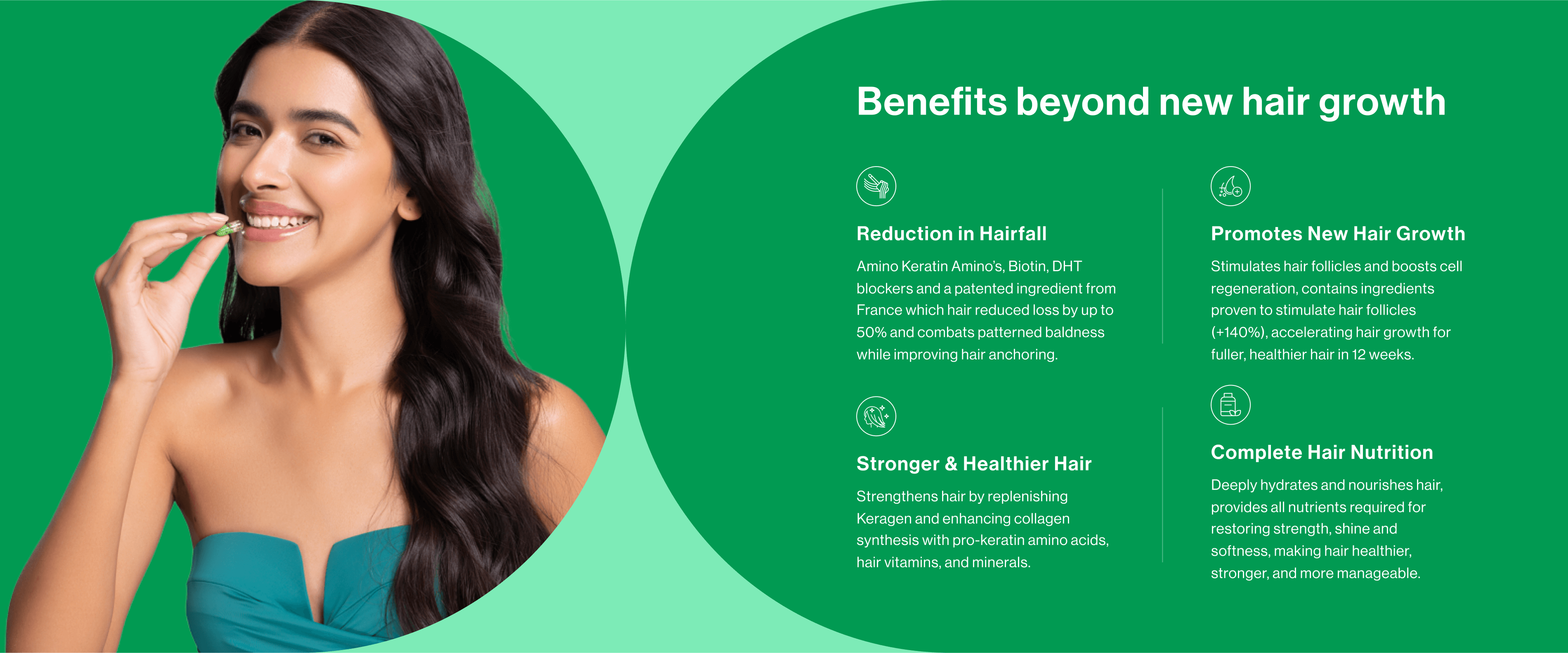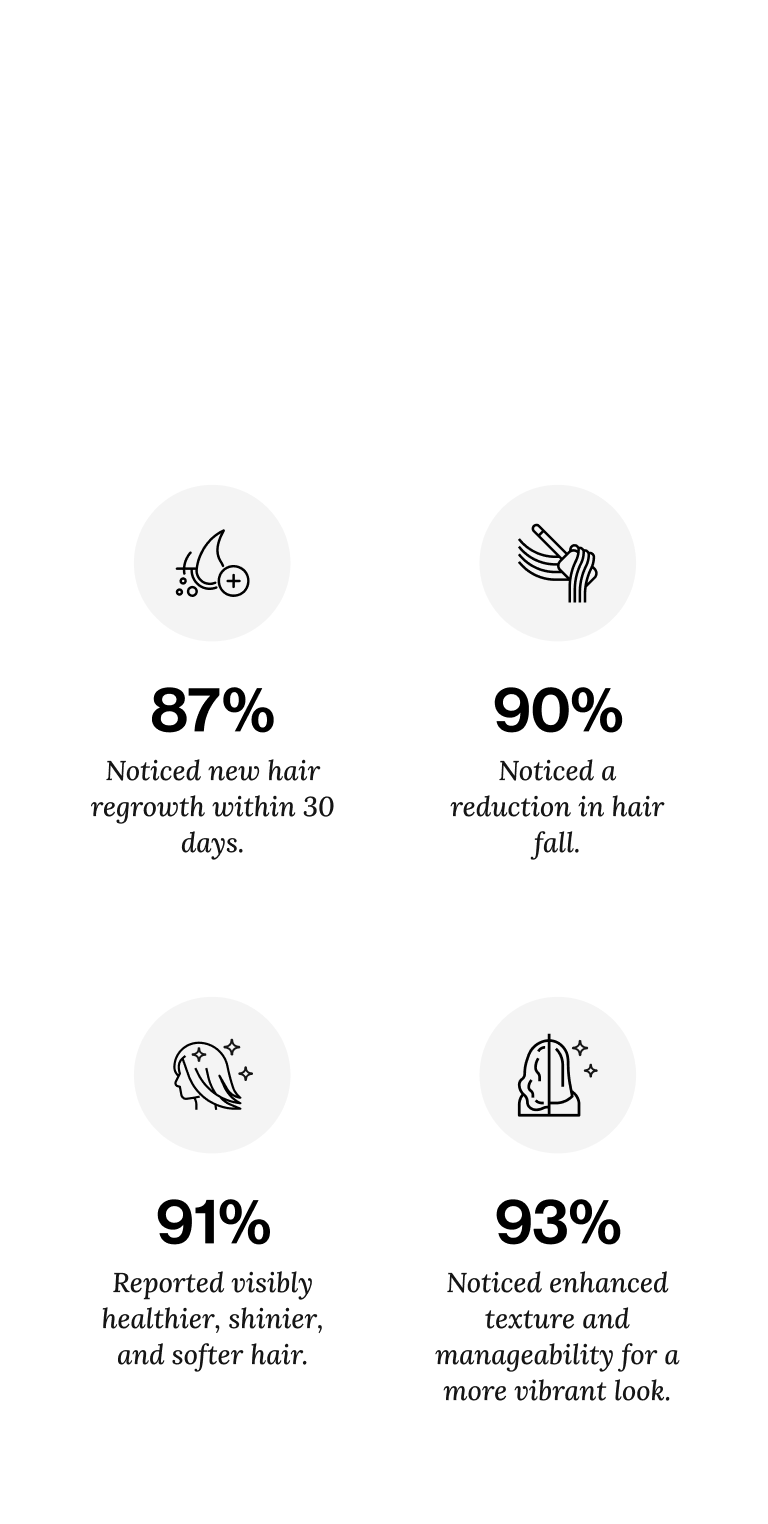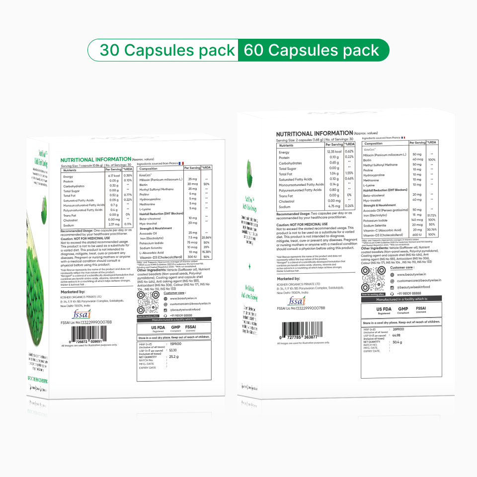 Our advanced hair formulation is carefully crafted to tackle all hair problems from their root cause. The product features ingredients scientifically studied to boost Keratin and Biotin supply and help in Keratin bonding; along with various DHT blockers, Vitamins and Minerals.