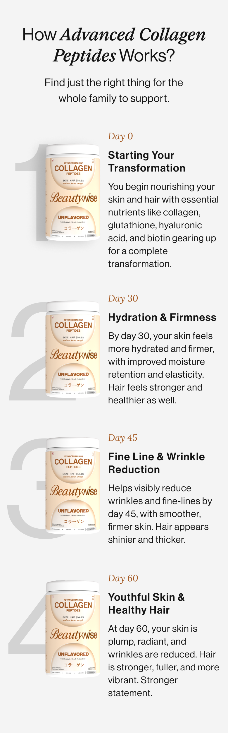 This advanced formulation combines bioactive collagen peptides with potent antioxidants and vitamins to boost skin elasticity, hydration, and reduce wrinkles. Its fast-absorbing ingredients promote deeper skin repair and enhance natural hyaluronic acid production for a youthful, radiant complexion.