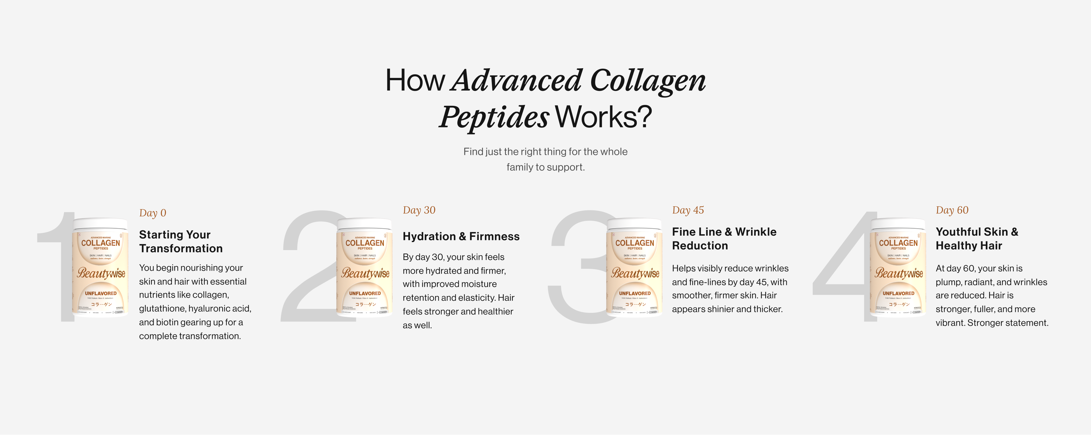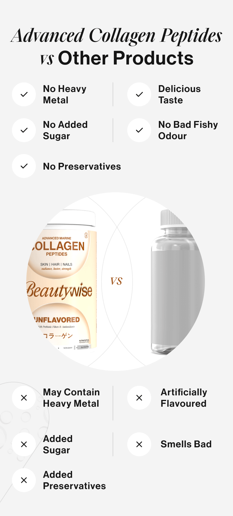 We lose collagen at a rate of 1.5% from the age of 25. It is recommended to keep taking collagen supplements to ensure sufficient collagen levels are maintained by your body so you keep looking your best.