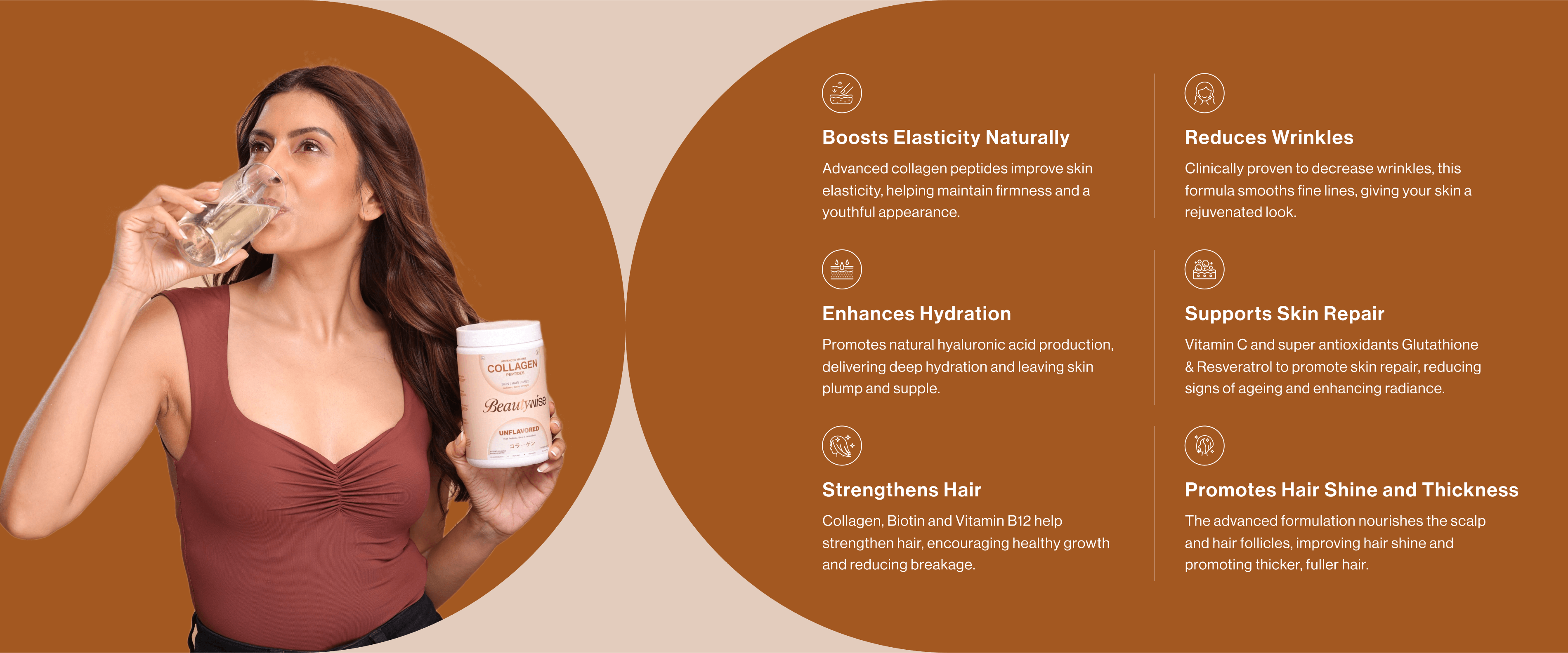 As you age collagen starts depleting from your body and replenishing it with collagen supplements prevent skin sagging, hair loss etc giving it amore youthful, heathier look. You can say collagen is the fountain of youth.