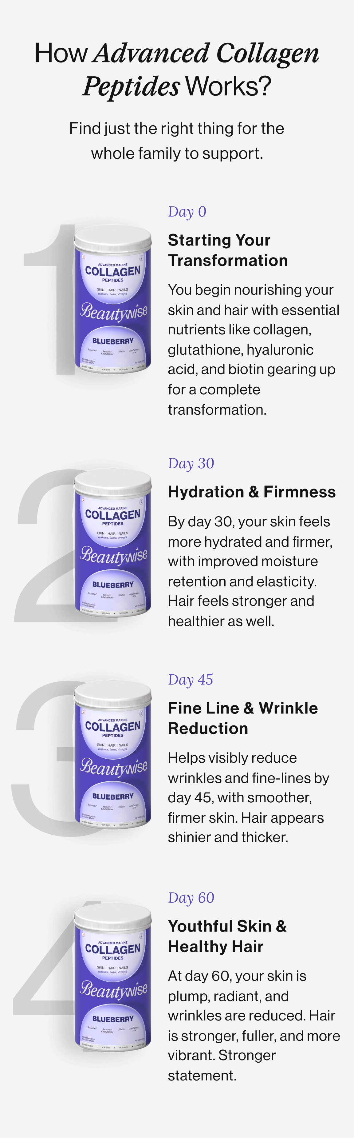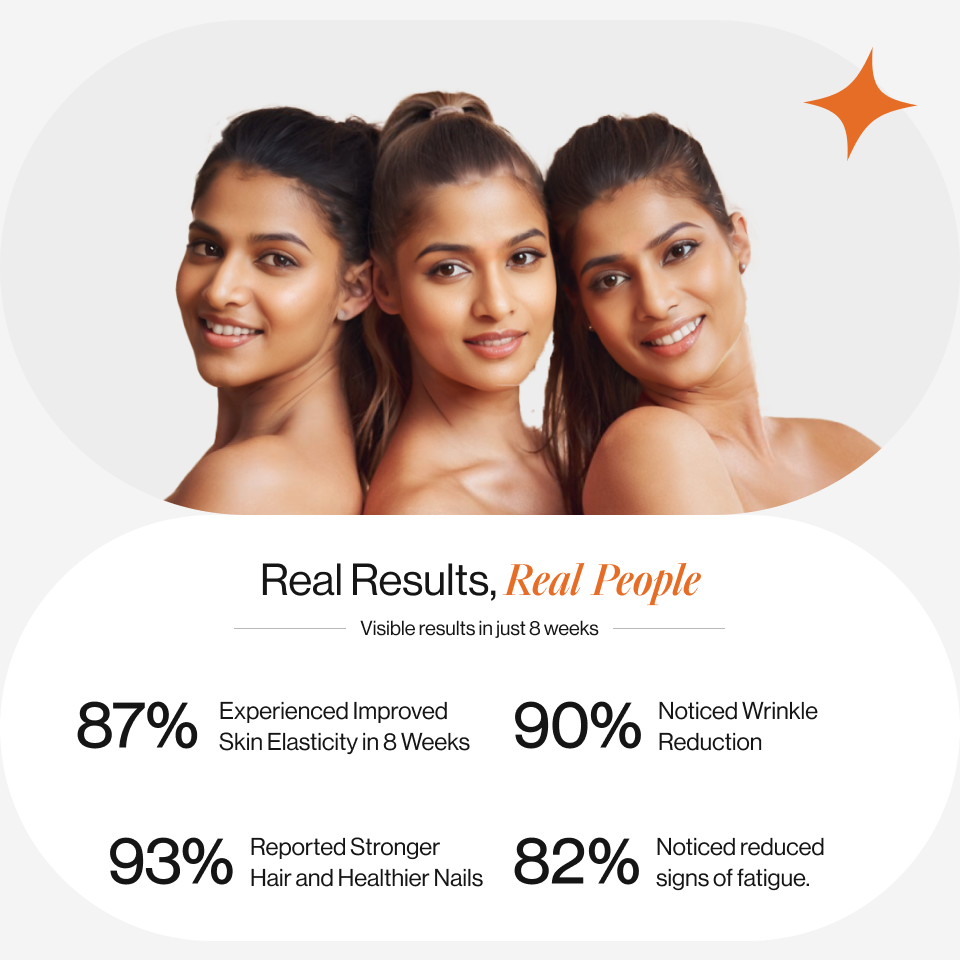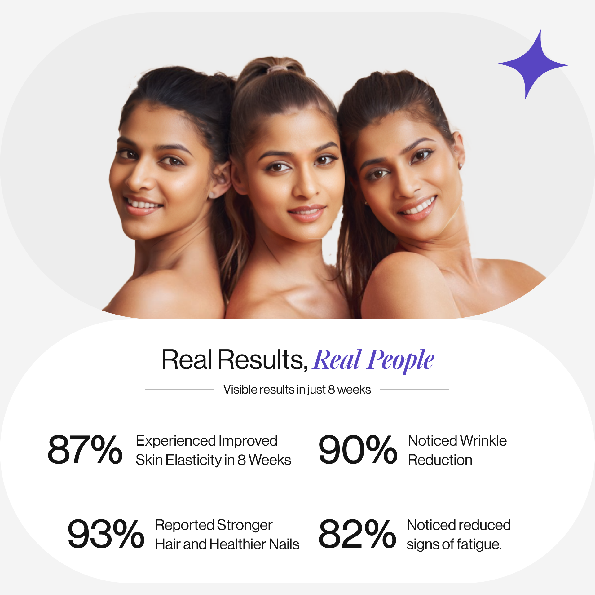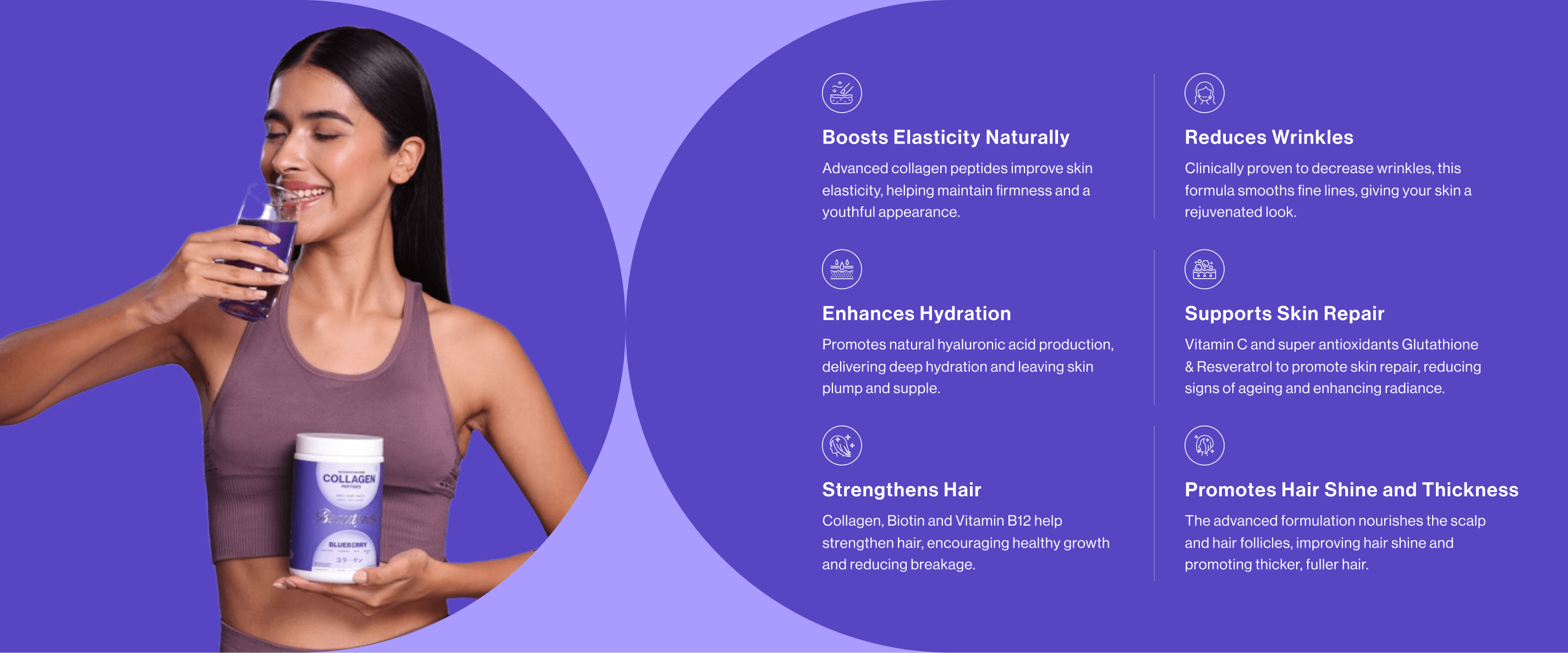 We lose collagen at a rate of 1.5% from the age of 25. It is recommended to keep taking collagen supplements to ensure sufficient collagen levels are maintained by your body so you keep looking your best.