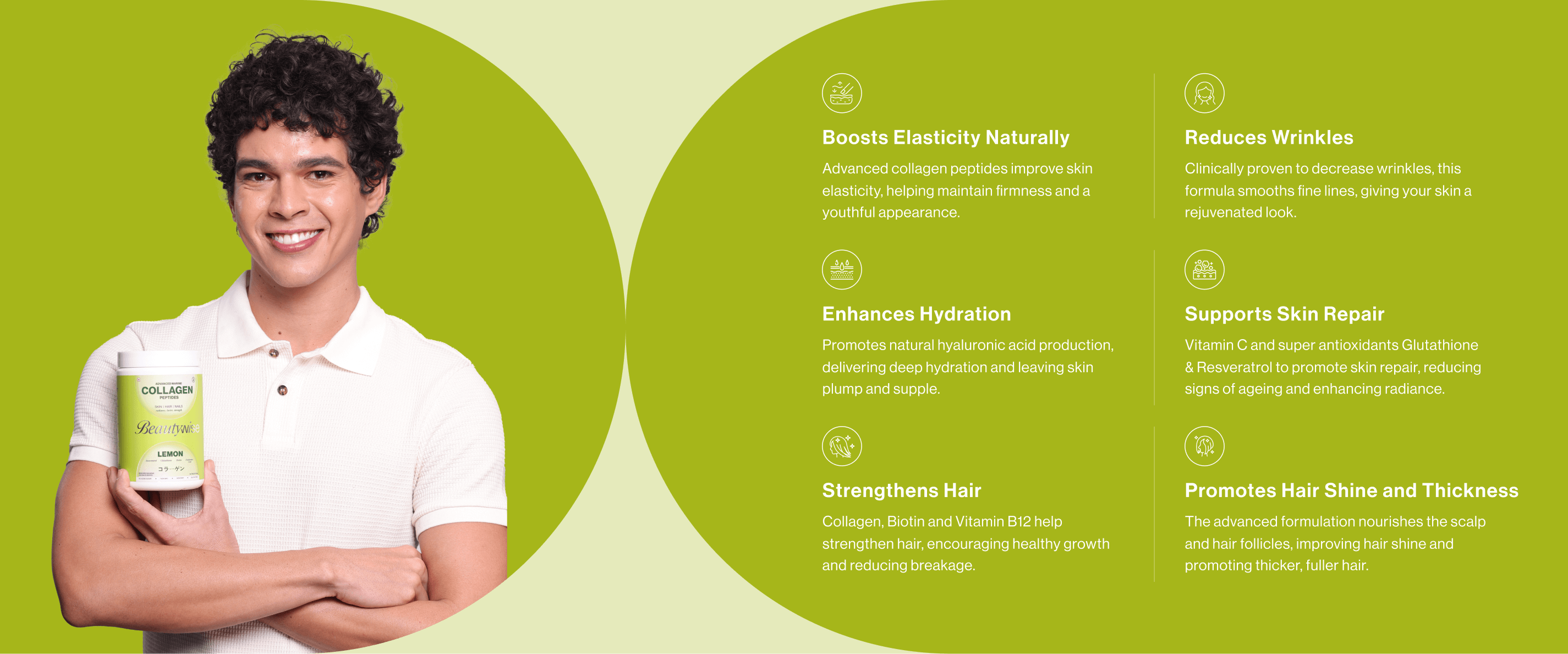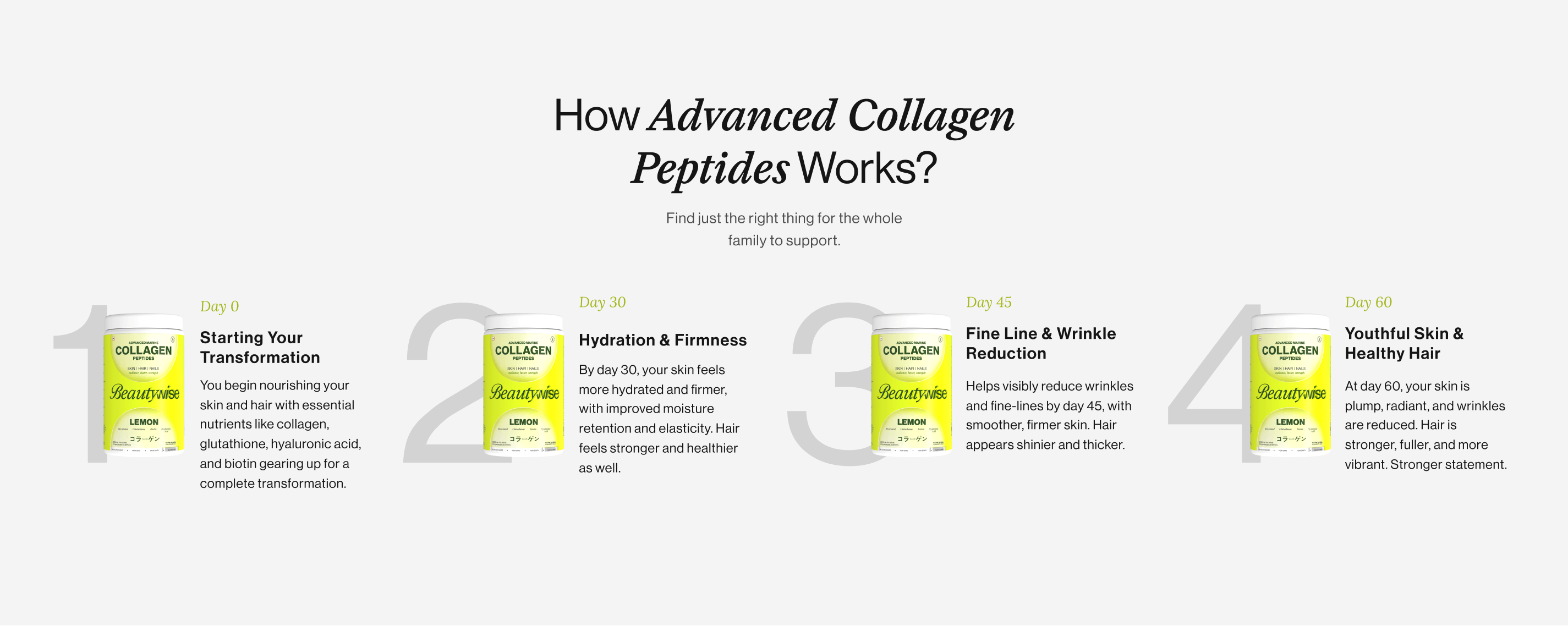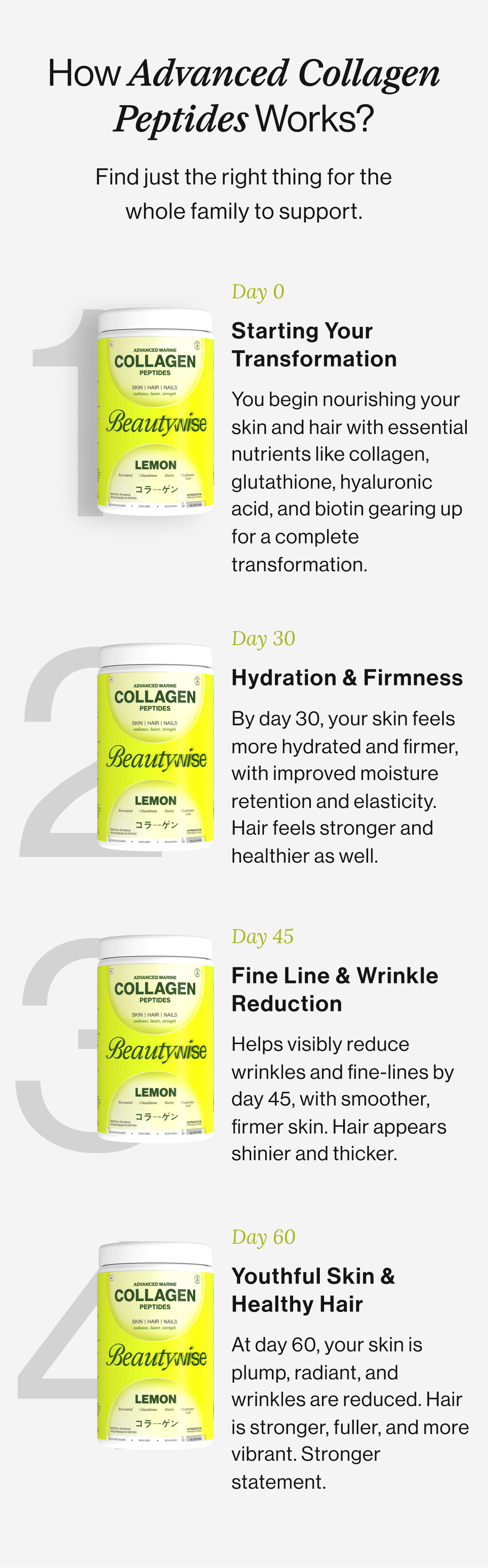 “Advanced collagen peptides improve skin elasticity, helping maintain firmness and a youthful appearance.”