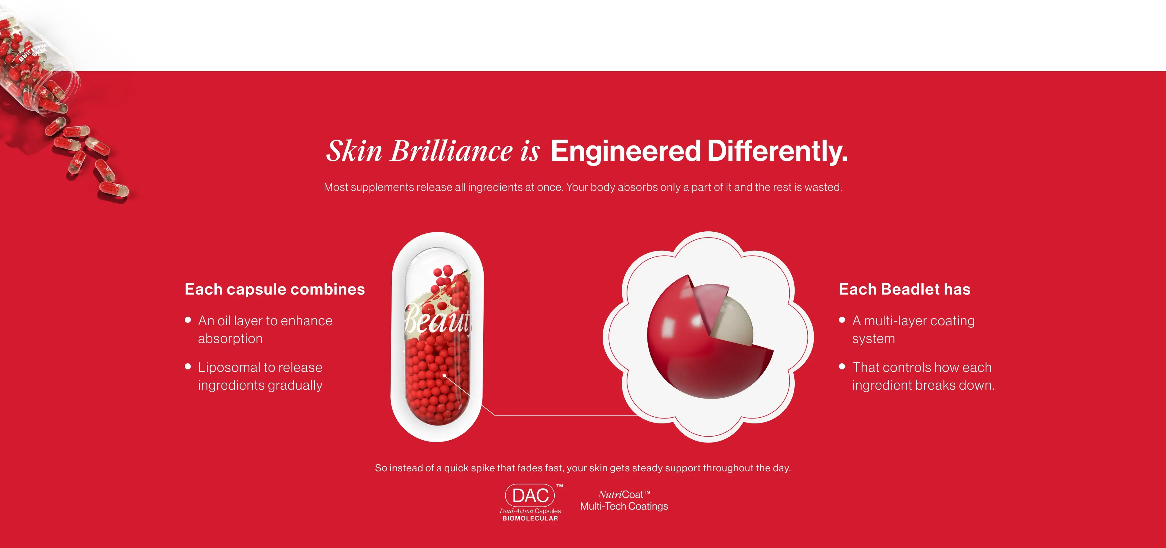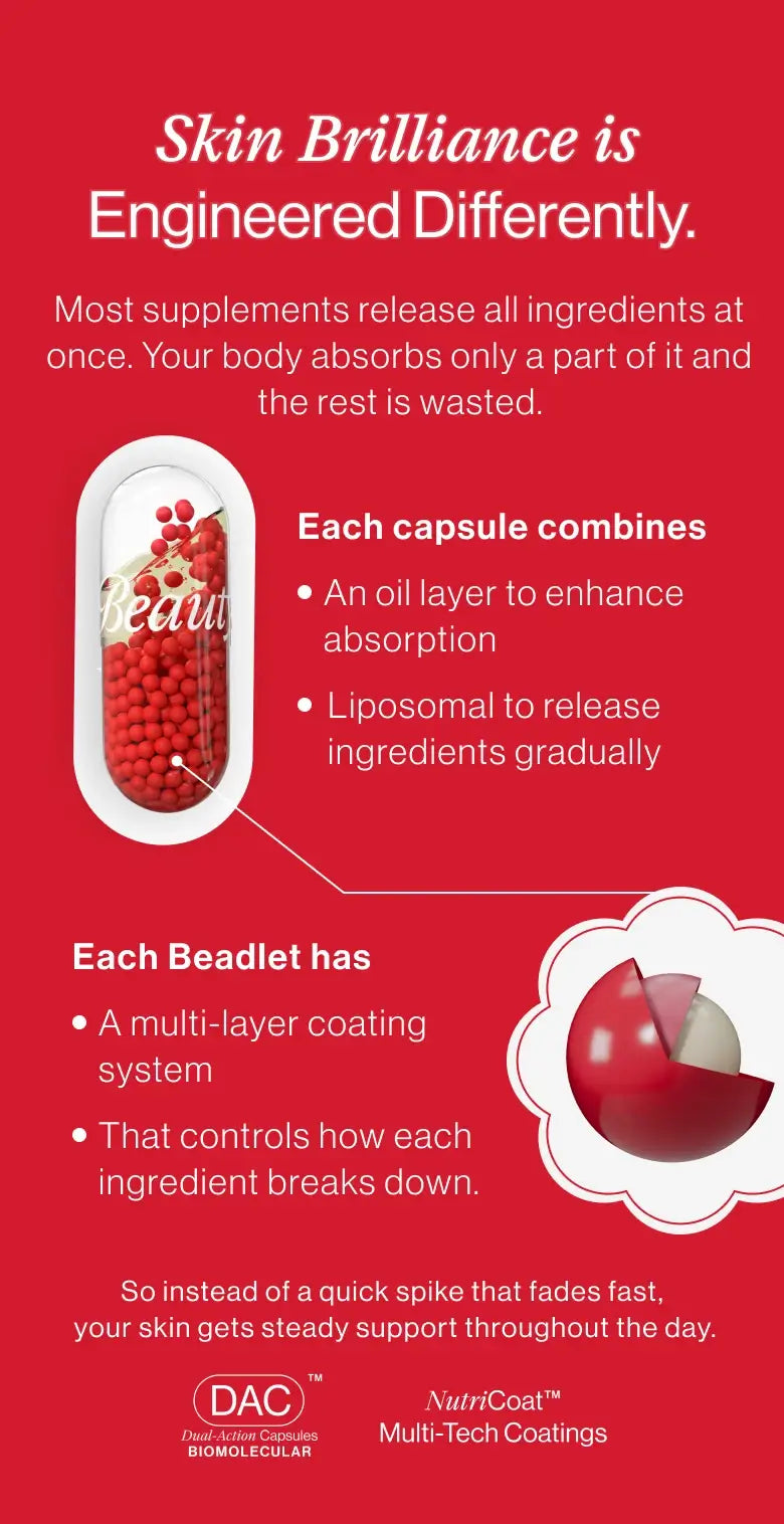 + Other Dual-Action Capsules: One capsule of each supplement after a meal. (Eg. one Skin Brilliance capsule + one Hair Rescue capsule taken together after breakfast and repeated after dinner)